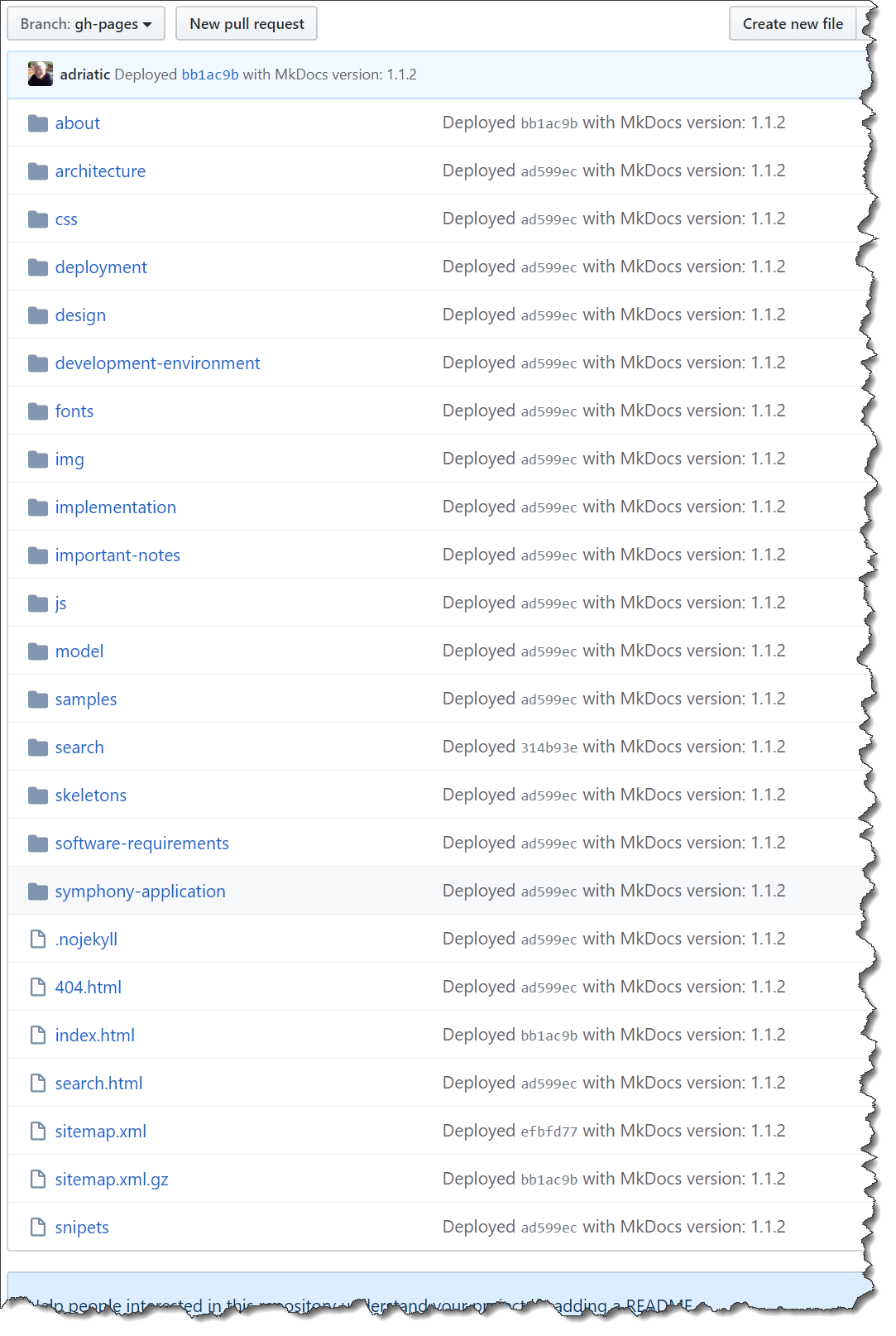 Use GitHub desktop pointed to the above local and remote repositories to save the content of the c:\work\symphony\symphony-docs\docs folder with Markdown. The .gitignore excludes the folder c:\work\symphony\symphony-docs\site